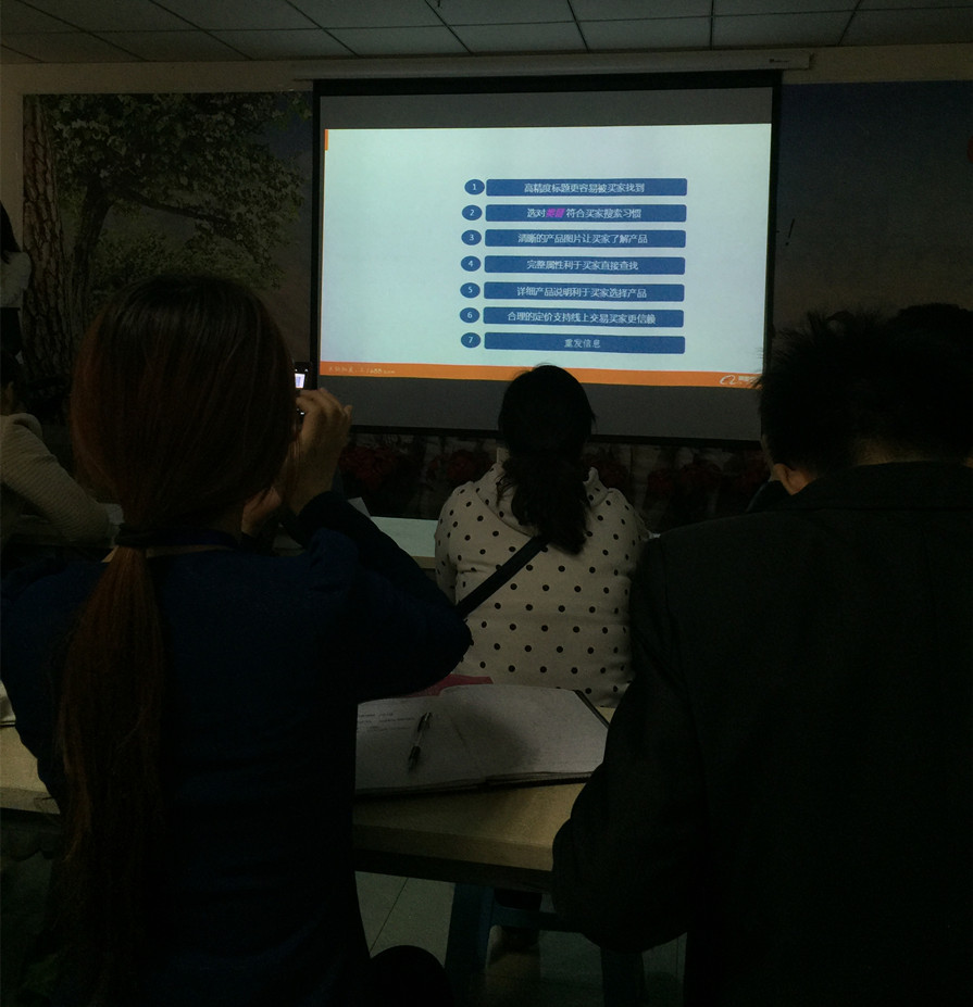 超前涂料有限公司是一個(gè)生產(chǎn)銷售型的企業(yè),主要生產(chǎn)和銷售真石漆,內(nèi)外墻乳膠漆,質(zhì)感漆,水包水多彩漆,拉毛漆等外墻涂料。在線下,我們已經(jīng)有十幾年的經(jīng)驗(yàn),但是線上的經(jīng)驗(yàn)卻只有1個(gè)月,所以,一聽說阿里巴巴這周有培訓(xùn)課程,電商的4位超前超人們趕緊報(bào)名前來參加:
